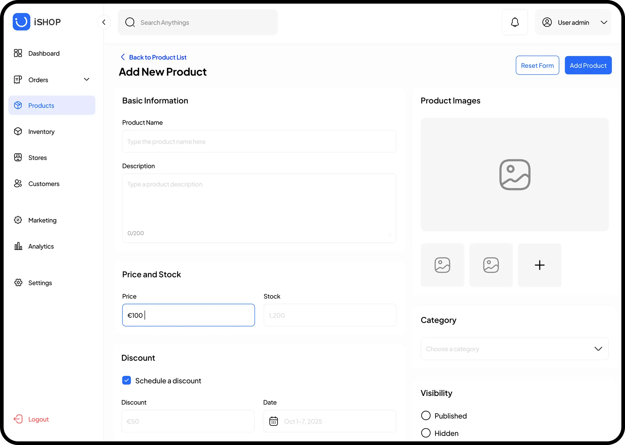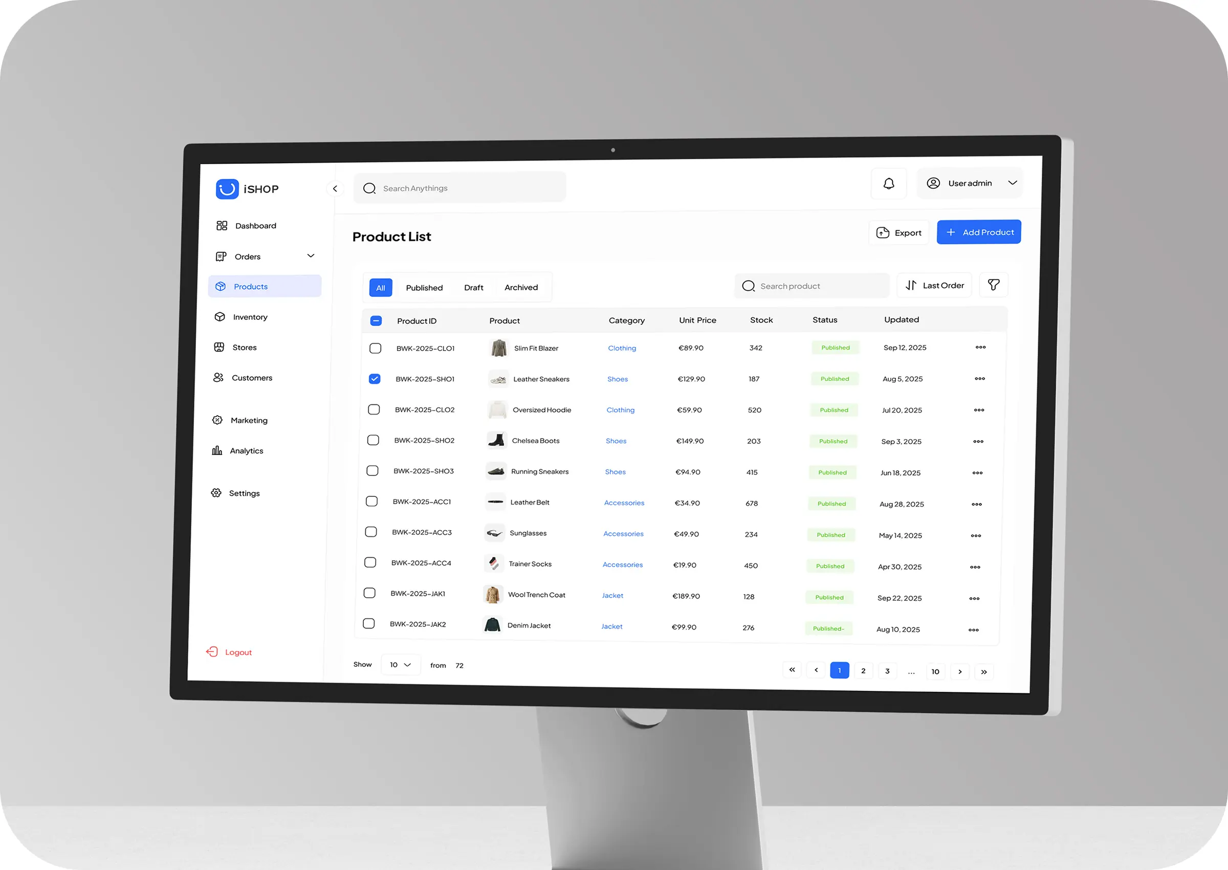 A flexible catalogue with clear status tags and inline editing. Adding new products was redesigned to reduce input friction and support faster daily operations.